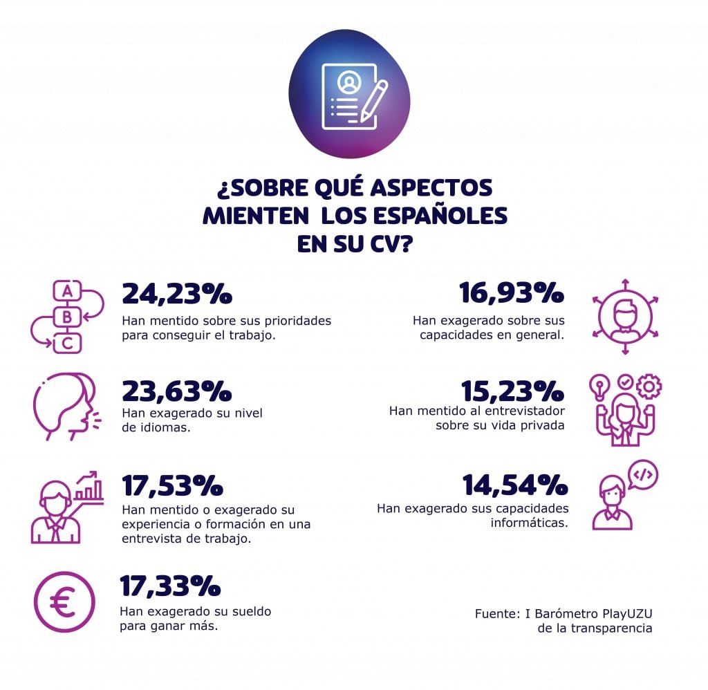 1 de cada 4 españoles, y en mayor medida los hombres, ha mentido en su curriculum o entrevistas de trabajo sobre su nivel de idiomas (24%), franja salarial (17%) y experiencia y formación (18%).